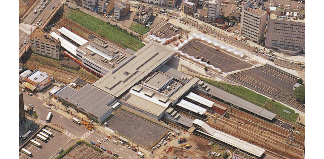 平成元年7月9日、世界デザイン博覧会開催に先立ち、金山総合駅がオープンしました。これに合わせて、総合駅と地下鉄金山駅とを結ぶエスカレーターを設置し、JR線、名鉄線との乗換利便性を向上させました。