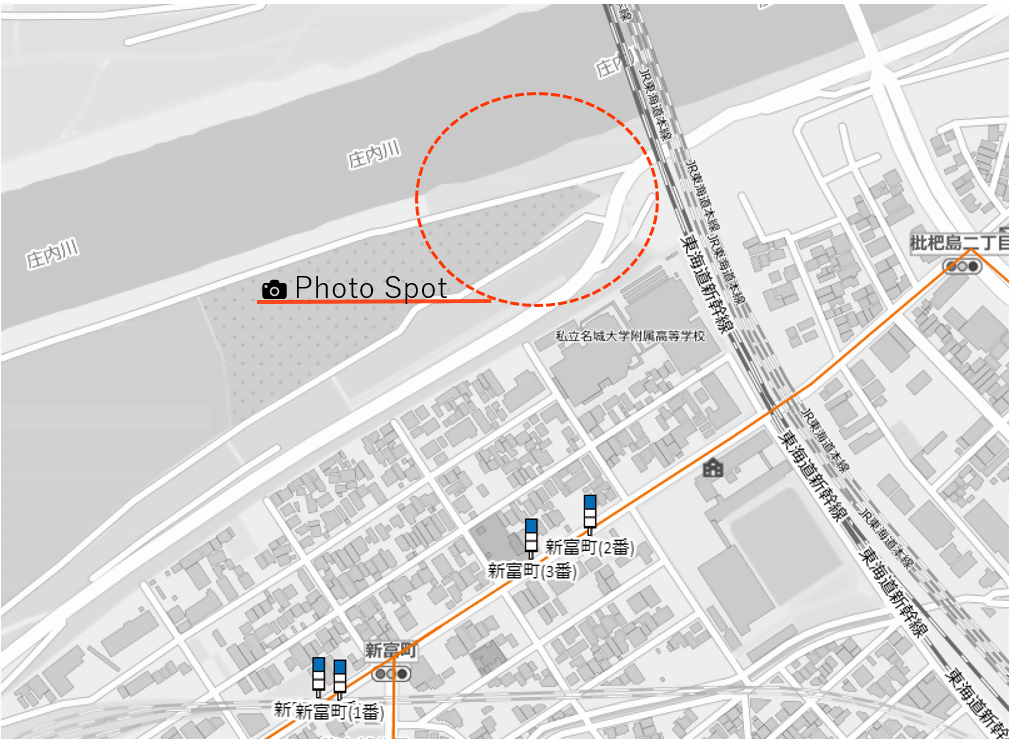 受賞者おすすめコメント:名鉄・JR・新幹線の3路線が絶え間なく頭上の線路を走る。