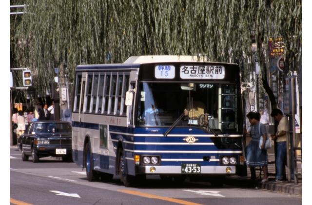昭和53年4月、ブルーとアイボリーのツートンカラーを採用した低床冷房の専用車両が登場。名古屋駅前~桜通~東新町~広小路通~名古屋駅前を循環する10号系統の運行を開始しました。この系統は利用者が多く、59年5月から幹線15号系統としましたが、平成元年の地下鉄桜通線開通により廃止となりました。